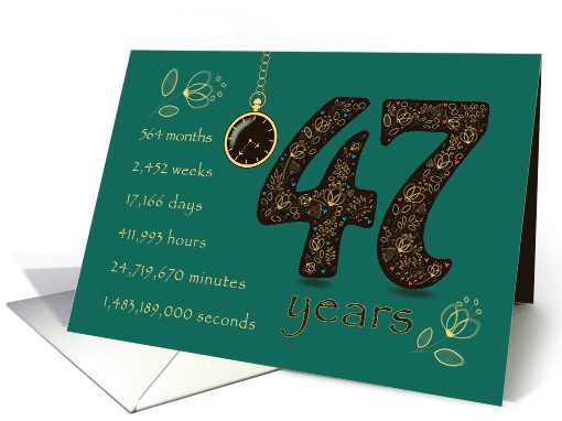 | Title: | 47th Birthday Card. 47 years break down into months, days, etc. |