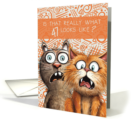 | Artist Notes: | Pay someone turning 47 a compliment on how great they look with this funny pair of scruffy cats looking quite surprised on a fun doodled background. |