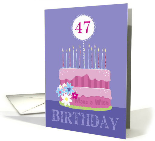 | Artist Notes: | 47th Birthday Cake greeting card design in Pink, set on a Purple background, with distressed style lettering, set on a glossy card. ©DaleSimpson |