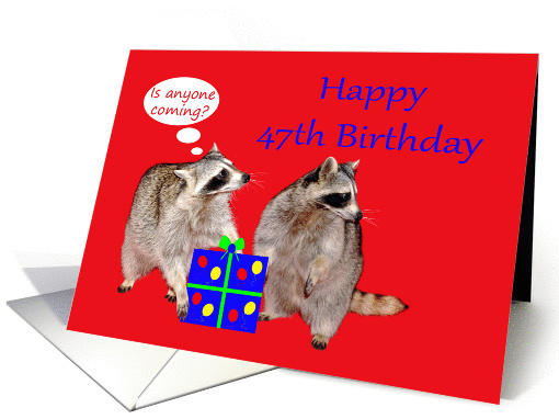 | Artist Notes: | Say Happy 47th Birthday to someone special with a funny card featuring a couple of raccoons (masked bandits) stealing a birthday present with balloons and a bow |