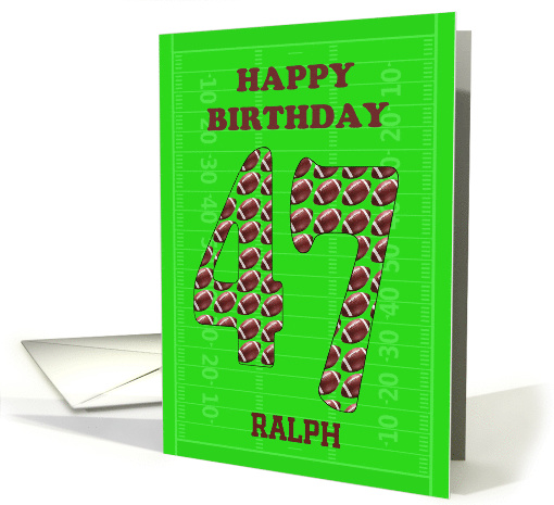 | Artist Notes: | Add a name to make a 47th birthday card for a football fan. The numbers are filled with footballs, while the background is a football field. |