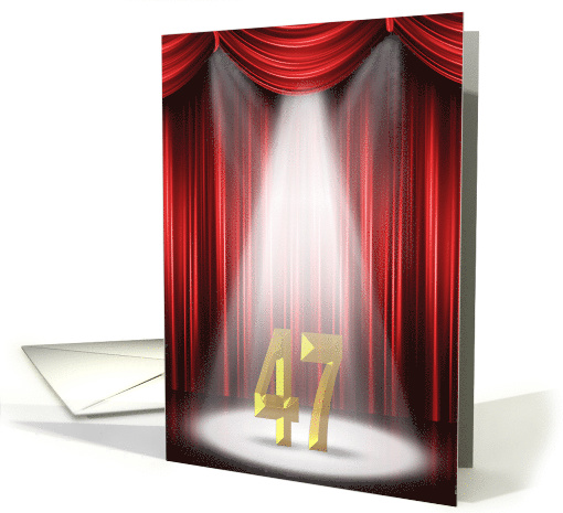 | Artist Notes: | Gold 47 text in stage spotlight with red curtain backdrop for 47th birthday. |
