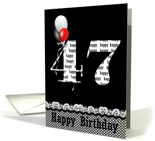 | Title: | 47th birthday-red, white and black balloon bouquet on black |