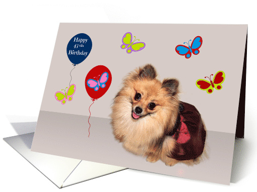 | Title: | 47th Birthday, adorable Pomeranian surrounded by cute butterflies |