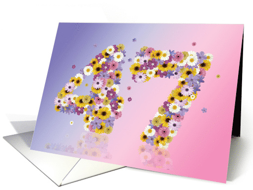 | Artist Notes: | 47th birthday card. A fun birthday card with happy numbers made from daisy flowers. A great card for a beautiful lady. |
