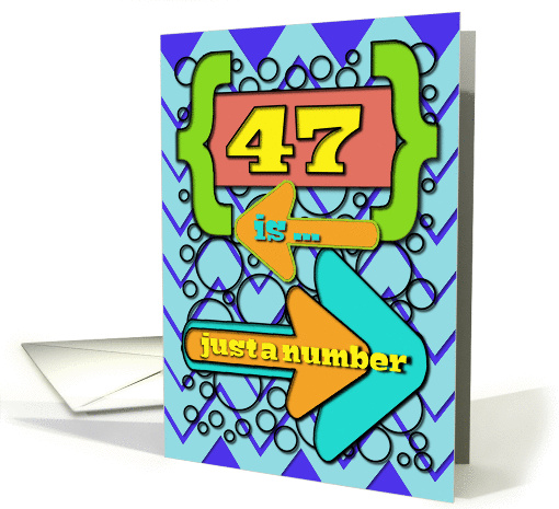 | Artist Notes: | Say Happy 47th Birthday with this design of bright colored arrows,chevrons,polka dots and a funny sentiment.Original digital art design by Betsy Bush of Birthday Cards Cafe'. |