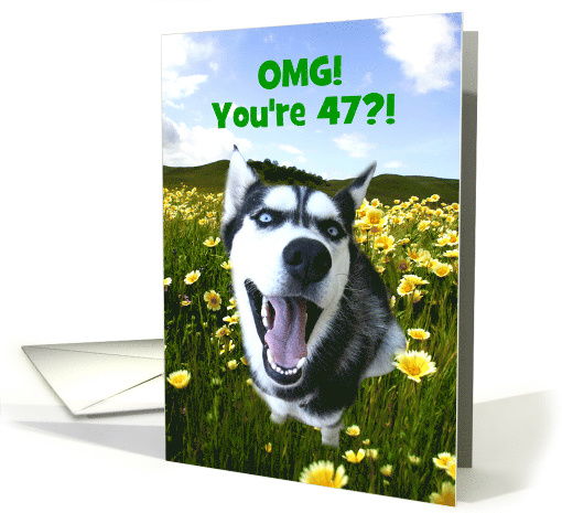 | Title: | Happy 47th Birthday Smiling Cute Husky Dog Customizable |