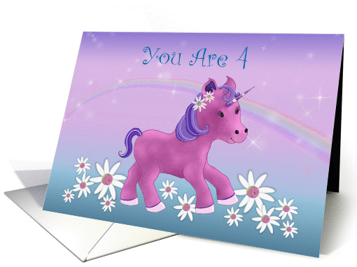| Title: | You are 4, Happy Birthday with Unicorn |