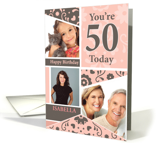 | Title: | 50th Birthday With Flowers & Hearts, Your Photo Here |