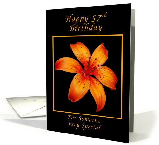 A stunning bright orange day lily against a black background cannot be missed. Surley that special person will be delighted receiving this card on their 57th birthday.