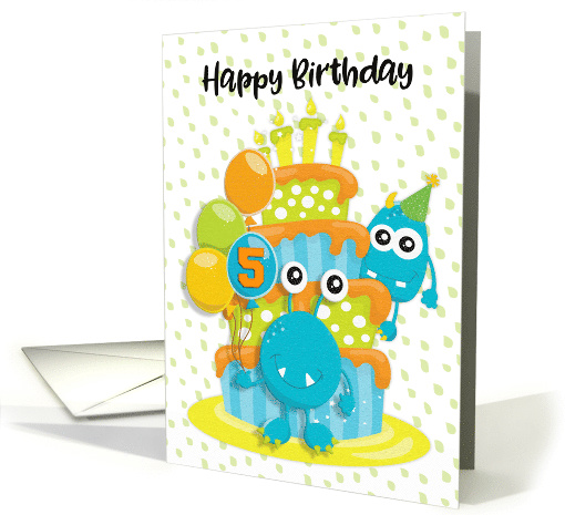 | Title: | Happy 5th Birthday to Young Child Birthday Cake and Monsters |