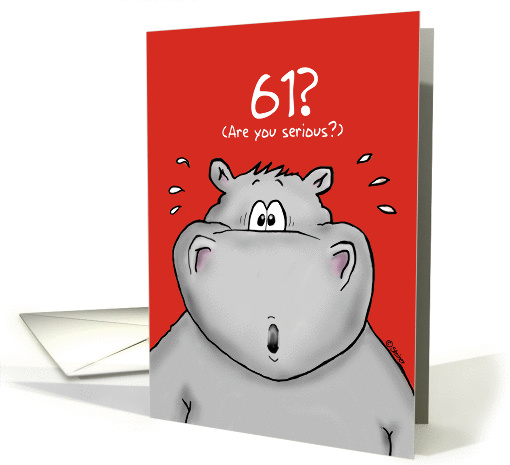 61st Birthday - Humorous, Surprised, Cartoon - Hippo