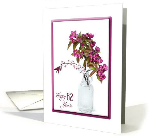 62nd Birthday-crab apple bouquet in vintage bottle on white