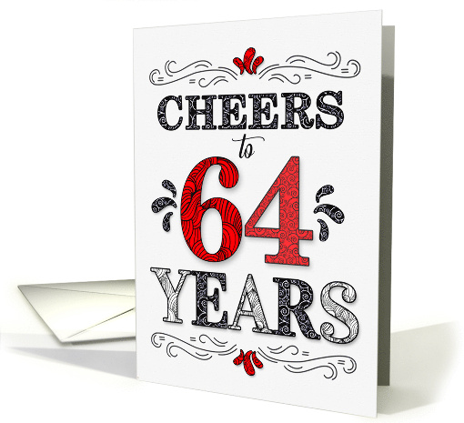 64th Birthday Cheers in Red White and Black Patterns