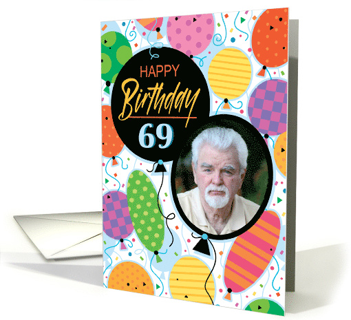 | Title: | 69th Birthday Custom Photo Bright Balloons and Confetti |