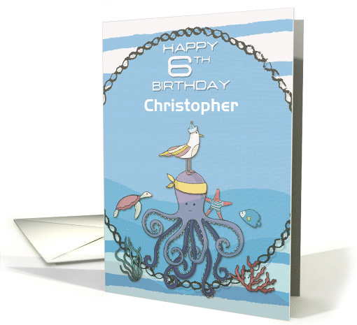| Title: | Happy 6th Birthday Custom Name Octopus,Seagull,Starfish Nautical |