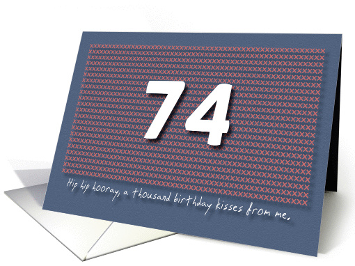 74th Birthday card for a very good friend. The front text: Hip hip hooray, a thousand birthday kisses from me. Inside text: You really are a wonderful human being.Therefore, you are going to be spoiled today!