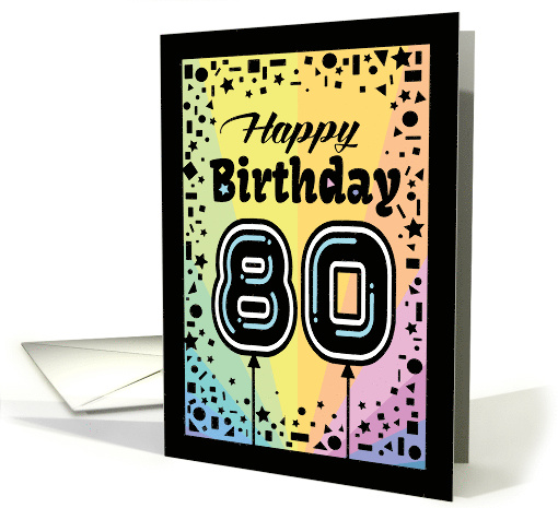 Send a 80th birthday surprise with graphic typography balloons. The confetti border brings a celebratory feel to the arrangement, and the number 80 balloon shapes highlight the importance of the year.