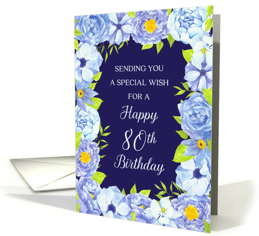 Blue Watercolor Flowers Happy 80th Birthday Card