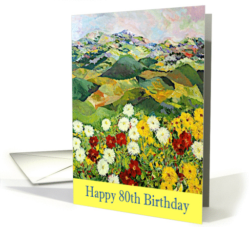 Colorful wildflowers and mountains Original Painting by Allan Friedlander Happy 80th Birthday. You can add or change the inside message to best meet your needs.