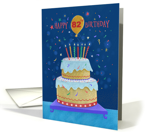 Birthday design suitable for him or her, illustrated with a fun happy 82nd celebration party cake in bold colours. ©DaleSimpson