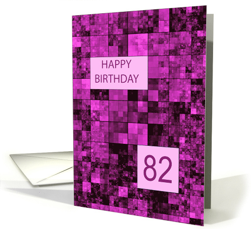 82nd birthday card. Wish a happy birthday with an elegant card. Pink and purple squares combine to make a cool feminine birthday card. An artistic way to wish someone a happy birthday.