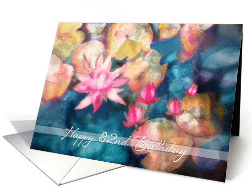 This "Happy 82nd Birthday" card features my original watercolor painting of pink water lillies floating on a blue lake. You can edit/add text inside card. Custom requests welcome.