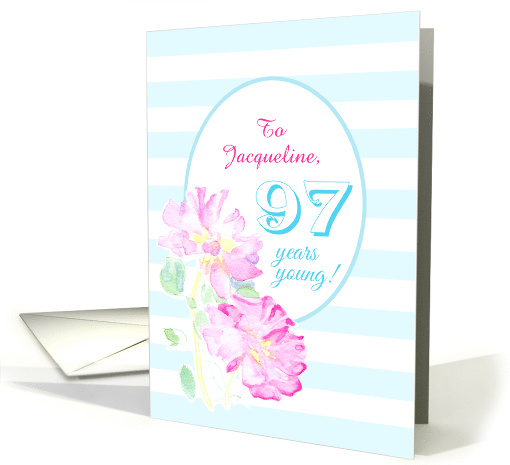 | Title: | Custom Name 97th Birthday with Pink Roses and Stripes |
