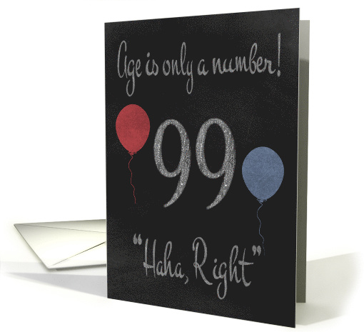 99th Birthday, adult humor, chalkboard with chalk colored balloons