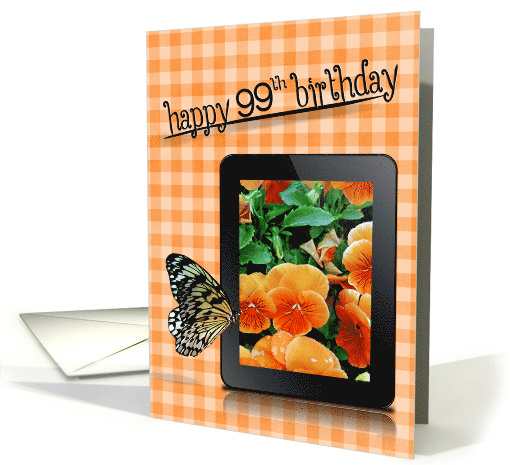 | Title: | 99th Birthday Butterfly and Orange Pansy Photo On a Tablet |