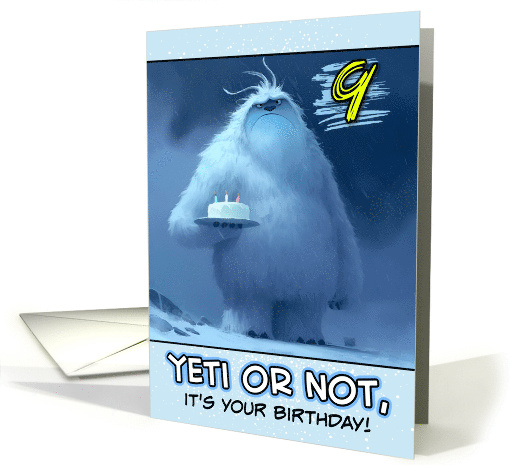 A famous creature of folklore, the elusive yeti, has emerged to give you a special birthday cake. 'Yeti or not, it's your birthday!' A humorous abominable snowman marks special day card to send to that special 9-year old who's larger-than-life personality matches this sasquatch's towering fabled stature.