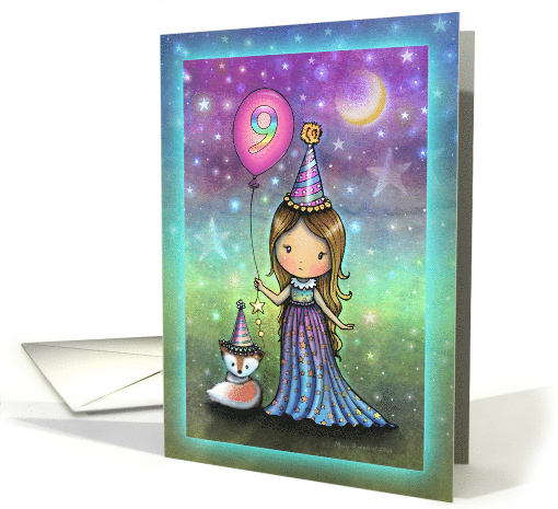 Sweet Birthday Girl with Cute Fox and Balloon for 9 Year Old