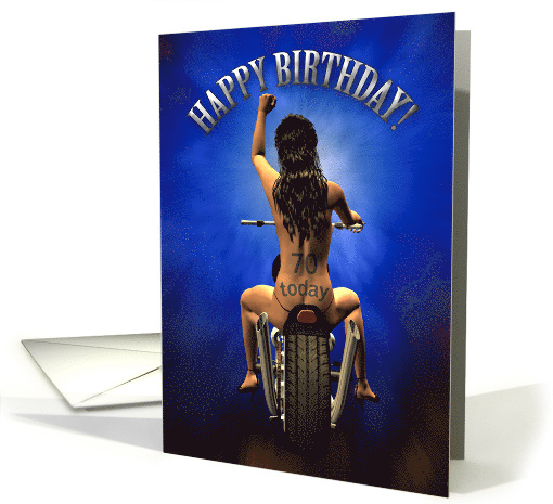 | Title: | 70th Birthday Sexy Girl on Motorbike Age Tattoo on her Back |