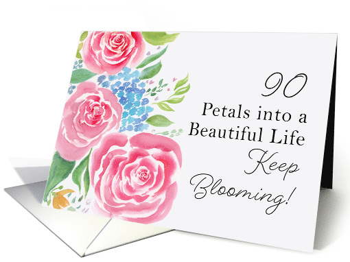 | Inside: | Like the gentle bloom of a rose, you've spent seventy years shining with grace and warmth. Wishing you a birthday as beautiful as your heart filled with joy, laughter, and all you've dreamed of. Happy 90th Birthday! |