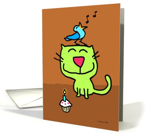 Birthday cat with singing bird