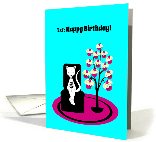 | Artist Notes: | A contemporary Birthday card design featuring a stylistic texting cat illustration and a cupcake tree to send your best wishes to friends or family. Inside can be personalized with your own words or custom ordered for any category or different color combinations. Contact me for any help! |