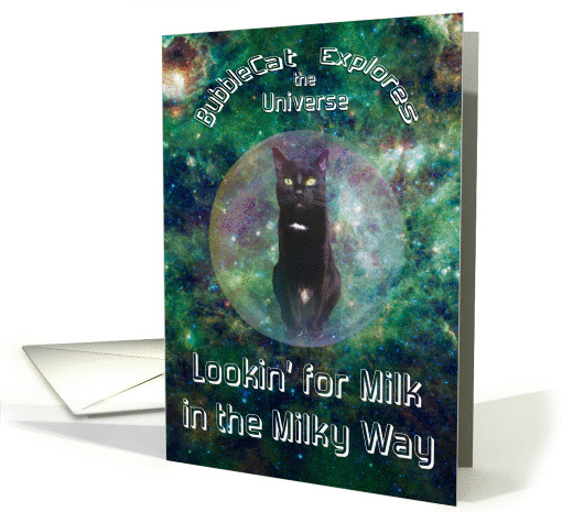 | Artist Notes: | Wish your favorite cat-loving space cadet a purr-fectly cosmic birthday with a space-cat plying the spaceways in his bubbleship - BubbleCat the Space Kitty is “Lookin‘ for Milk in the Milky Way.” “A Royal Celebration” photo of the Milky Way courtesy NASA/JPL-Caltech. |