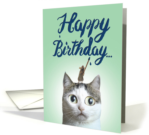 | Title: | Birthday Cat Sent Greetings Featuring Wide Eyed Cat Searching for a Mouse |