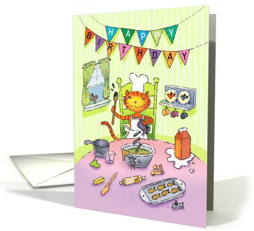 "Cat cooking up a birthday surprise"