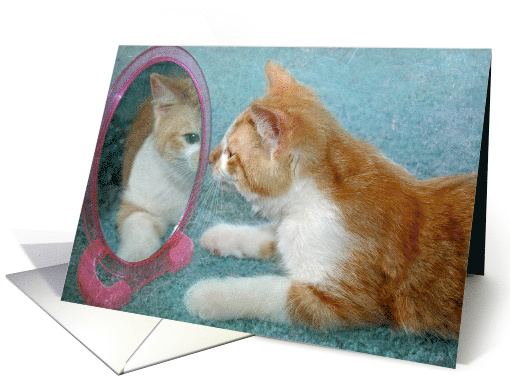 | Title: | Humorous Birthday tabby cat looking in mirror |