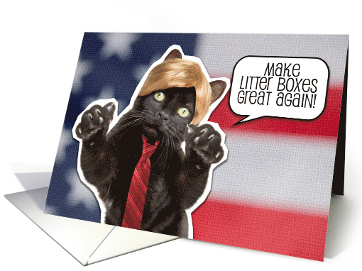 | Artist Notes: | Say Happy Birthday to someone who loves a little offbeat humor, cats and Donald Trump with this hilarious kitty in a blonde wig and red tie wanting to make litter boxes great again! |