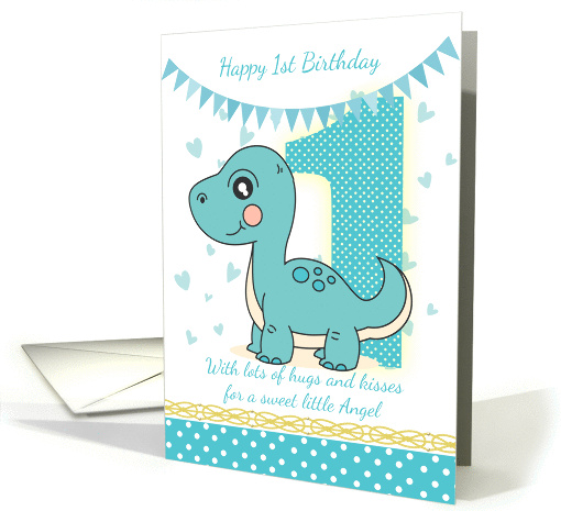 | Inside: | Your first Birthday is here so sending wishes your way, to bring you happy thoughts on your special day. You're cute and sweet, and full of fun, a special little Angel who's turning one. Happy 1st Birthday |