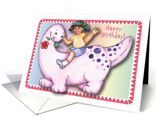 | Artist Notes: | This is a birthday card for a young girl dinosaur fan, featuring a girl riding a pink dinosaur. You can change the inside message at checkout, if you wish. 100211 |