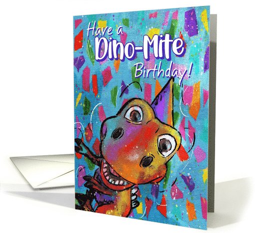 | Artist Notes: | A cute, colorful T Rex with a birthday hat on his head dances in a sea of floating confetti. The recipient should be a child who loves dinosaurs. |
