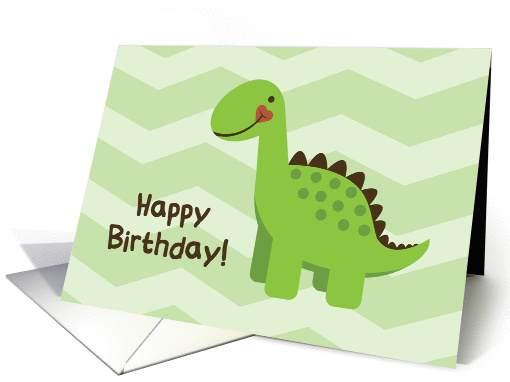 | Artist Notes: | Super adorable green dino cartoon on a light green chevron striped background. Front says Happy Birthday! Prefect for little boy's birthdays. Image © ClipartWhimsy.com |