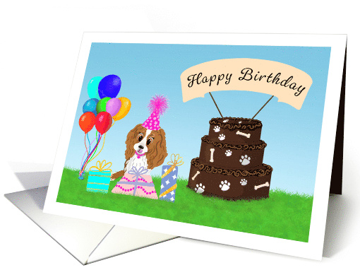| Title: | Happy Birthday Cavalier King Charles Spaniel with Cake |