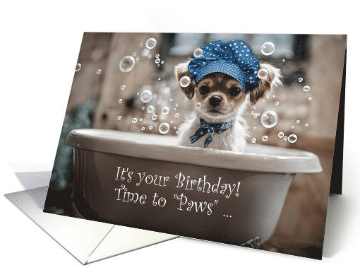 | Title: | Happy Birthday Cute Chihuahua Type Puppy Dog in Bath Custom Text |