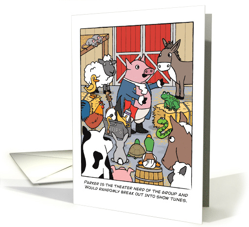| Artist Notes: | Parker is the theater nerd of the group and would randomly break out into show tunes. The barn scene consists of sheep, a cow, a donkey, a duck, a frog, a turtle, a rabbit, a snake, a rooster and two mice. |