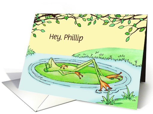| Title: | Enjoy the Moment, Frog Sunbathing on Lily Pad, Birthday Customize Text |