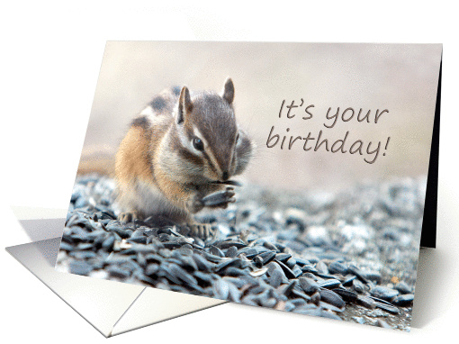 | Artist Notes: | This adorable brown and black-striped chipmunk is ready to wish a special person a very Happy Birthday. As he stuffs his cheeks with sunflower seeds he reminds you birthdays are a time for filling your belly with birthday cake. I photographed this chipmunk in Northern Minnesota. |